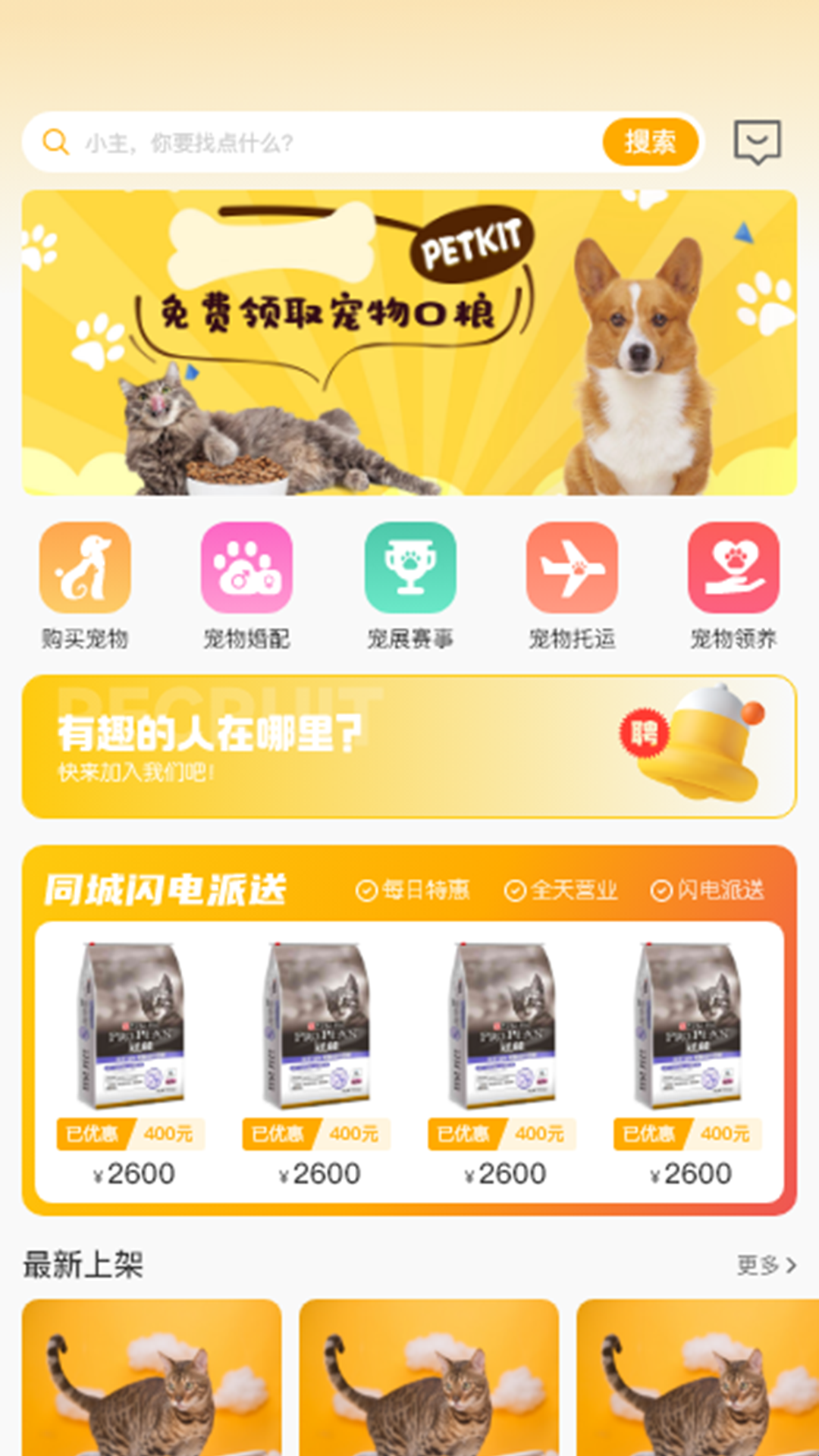 4、信息查询功能:能快捷查找订单,随时了解购物或服务进度。还可搜索宠物相关信息,如特定品种宠物或宠物用品。