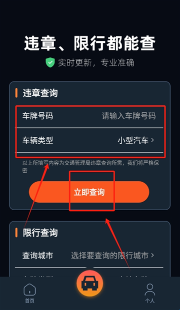 2、查违章时,输入车牌号和车辆类型,填完后点立即查询,很快就能看到有没有违章,还有具体的违章信息,清楚明白。
