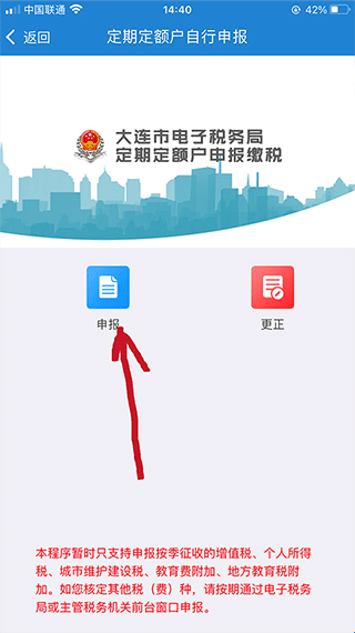 3、进入申报页面,用户可进行更正、申报两项功能服务,点击申报,即可跳转至申报页面
