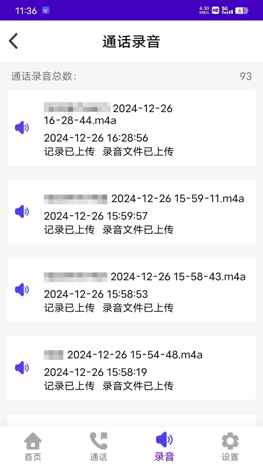 1、通话记录及录音上传。