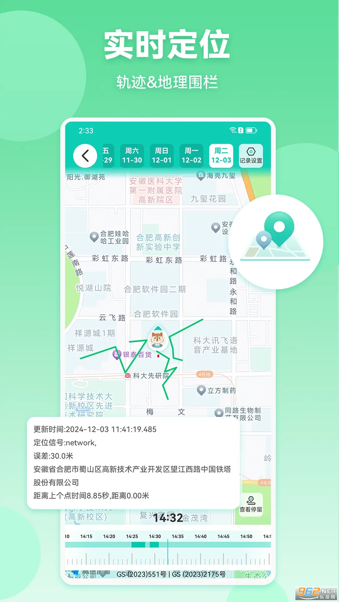 3、切换到定位的页面中可以获取孩子的位置;