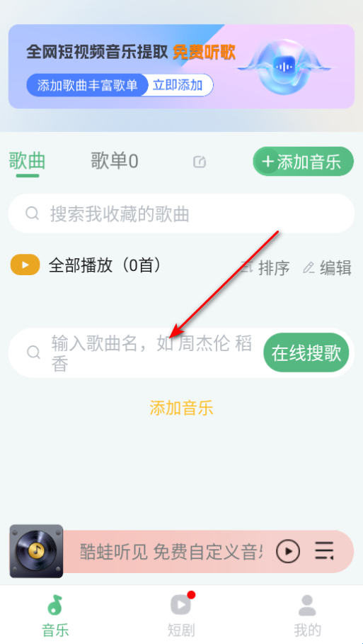 下载进入酷蛙听见软件,在这里输入歌曲名称进行搜索