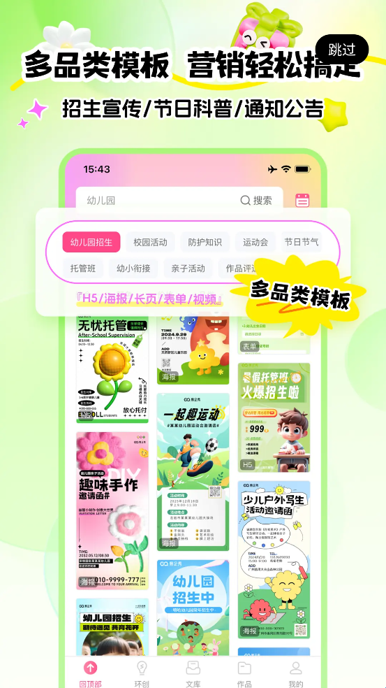1、覆盖招生宣传、节日科普、通知公告等场景,H5、海报、长页等多种形式任选。