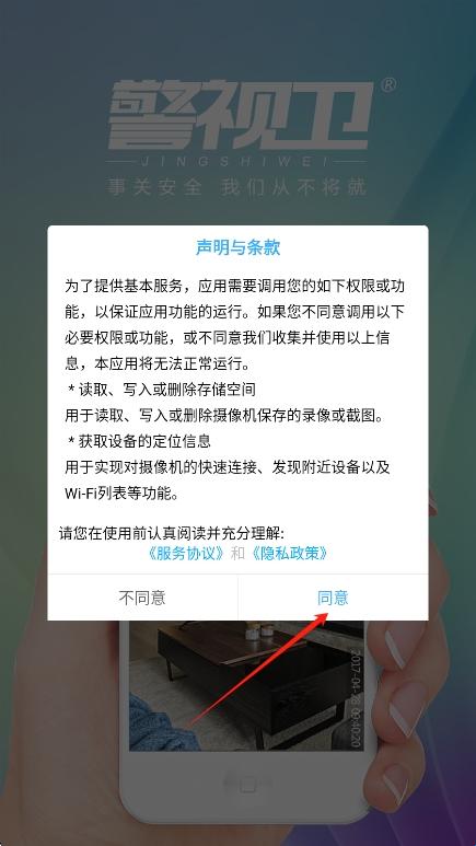 2、同意警视卫摄像头app的用户协议。