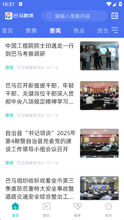 巴马融媒是一款本地类的融媒体软件,里面有海量的新闻资讯等着你来阅读,不定时更新文章资源,你可以在下面评论区讨论文章话题,提出自己的意见或者建议。软件同时还设置了许多的便民功能,可以帮助用户轻松解决日常生活中的遇到的事情,预约缴费都可以在线上完成。