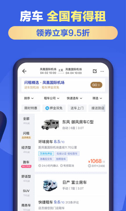 重新定义国内租车,享受8大特权,品质服务,优质体验。闪租特权包括:新车、洗车后交付、满油取车、无限里程、免费取消、充足车源、芝麻双免押、送车上门,更多租车特权也在抓紧上线中。