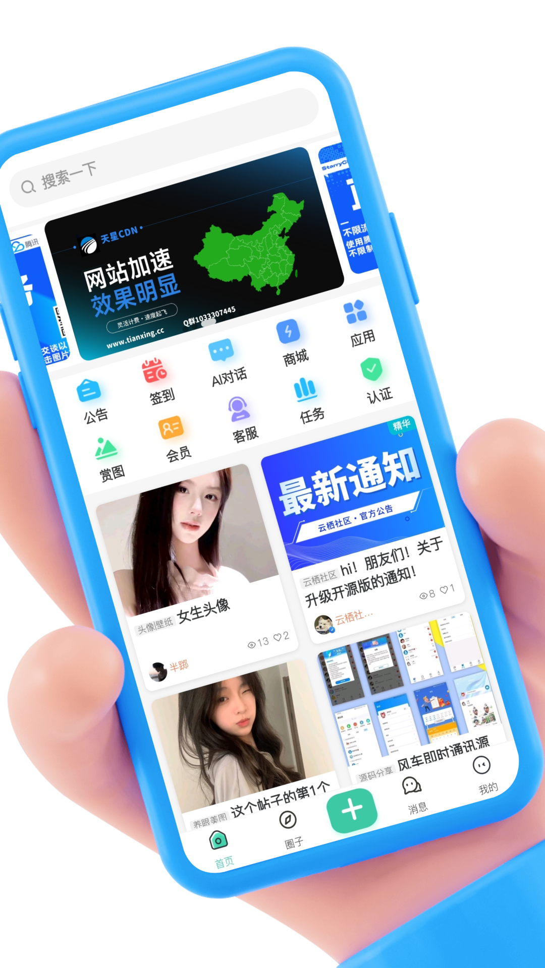 云栖社区app是一款资源社区分享平台,覆盖全方面资源分享,不管是什么类型资源这上面都有,覆盖游戏软件资源、资讯、头像、网盘、社交等各种类型,你也可以在上面进行发布资源分享,有需要的用户不妨下载一个吧。