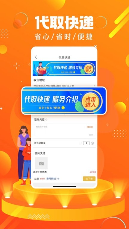 2、美食外卖、跑腿代购、快递代取,方便快捷配送到家。