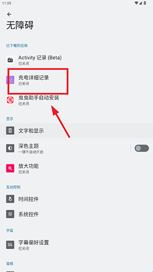 2、进入无障碍设置界面,找到充电详细记录app。