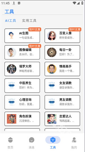 2、用户们可以根据自身需要来使用各种AI工具,例如AI生图,百变人像等。