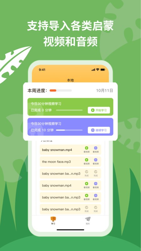 2、通过播放英语音视频的方式进行启蒙教育。