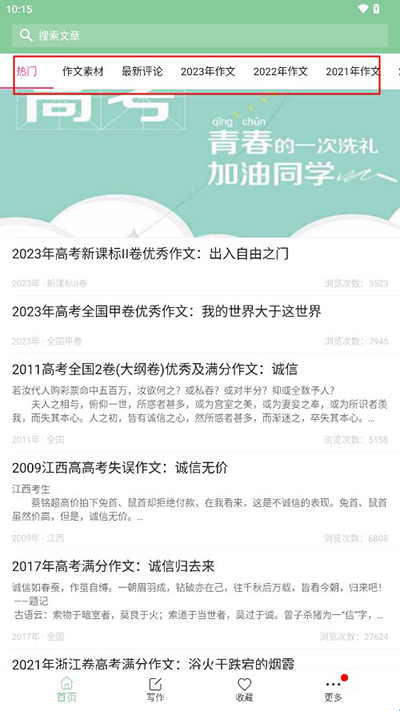 高考满分作文软件为广大孩子提供优质作文类型,收录全国各地优秀作文和素材,可以有效帮助用户高效学习,为孩子全方位提供各类写作方式、写作技巧,作文种类分类齐全,资源丰富,可以按照个人学习需要选择阅读,非常不错的学习辅助工具,有需要的小伙伴们快来下载体验吧!