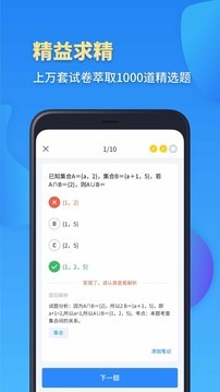 高一数学app手机版是一款专为高中数学科目而打造的刷题软件,里面全部都是用大数据从上万套真题和模拟题试卷,精选出1000道必刷的高频易错题和重点题,适用于高三、高二、高一数学、成人高考人群。同时App中丰富的题库资源和答案解析功能可以帮助用户们完成各种重难点的解答与学习,让你的成绩得到飞速提升,使自己对考试变得更加得心应手。如果你在练习的过程中想后期巩固数学知识点,可以添加笔记本或错题本,这样当你遇到考试的时候,能够再次打开app进行复习,让你顺利通过考试。