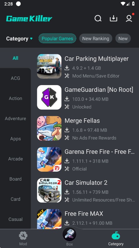 GameKiller是一款没有广告的游戏辅助盒子app,里面游戏非常多种类齐全兼容性强大,资深技术高的玩家可以对游戏进行修改,根据你的需要。此外还可以调节游戏的速度、简化进入战斗的步骤,界面操作简单,玩的过程中不会对手机设备以及软件本身造成伤害,你还可以在里面同游戏爱好者讨论游戏玩法。