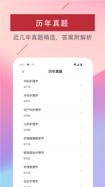 护理学考试真题题库是一款非常方便考主管护师的题库,在这里的功能是非常齐全的,考试的资源也是多样性的,能够能好的帮助我们学习题库,在这里用户能够更好更快的做题,需要的用户快来这里下载吧!