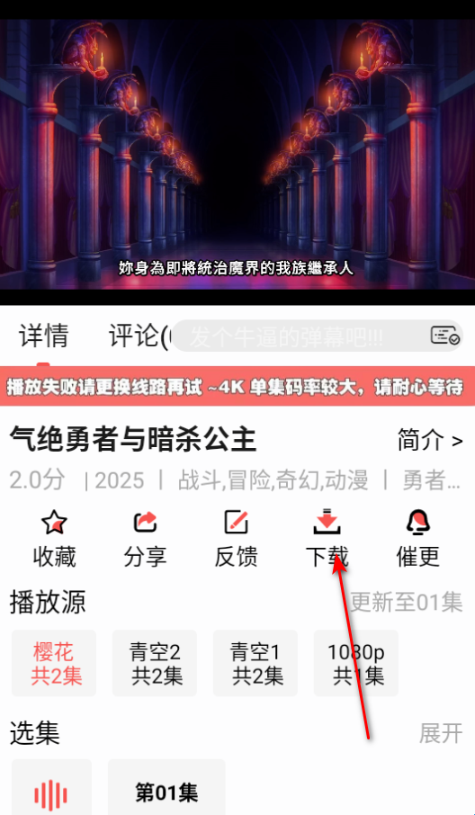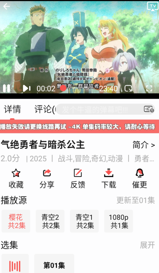 2、点击动漫等待播放,加载失败可以切换播放源。