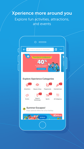 2、提供多种生活方式的产品,寻找附近的活动,看现场表演和美容护理等。