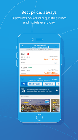 traveloka是一款专门为印度尼西亚打造的生活旅游服务软件,为用户们提供了酒店预订旅行交友等功能,让我们大家的出游更加的轻松方便,还有更多强大的功能等你来发现哟,喜欢的朋友就赶紧来下载使用吧。