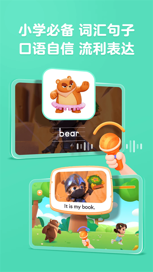 3、口语能力强化:提供6200加次开口互动机会,让孩子在实践中克服表达恐惧,提振口语信心提升流利度。