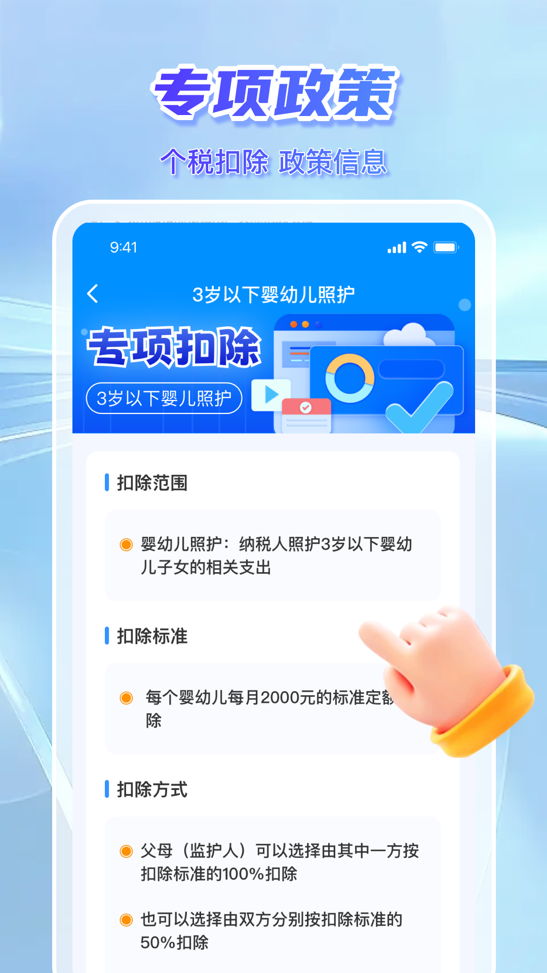 2、让用户可以随时随地查询税法知识、计算应缴税额并完成申报流程,成为每位公民的贴心税务助手。