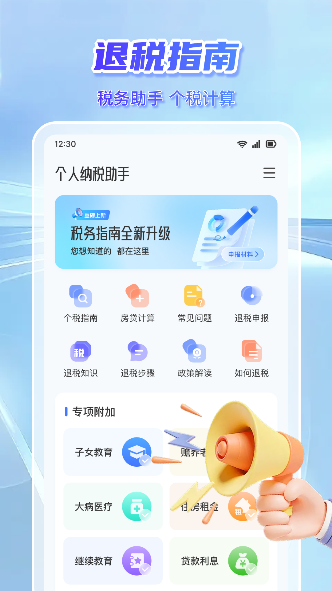 3、您可以计算个税信息、计算税后收入与房贷利息,了解退税知识及常见问题,快速掌握纳税要点。