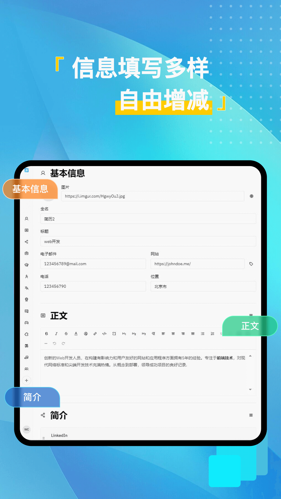 6、通过手机创建简历模板,生成链接,进行高效的编辑,更灵活。