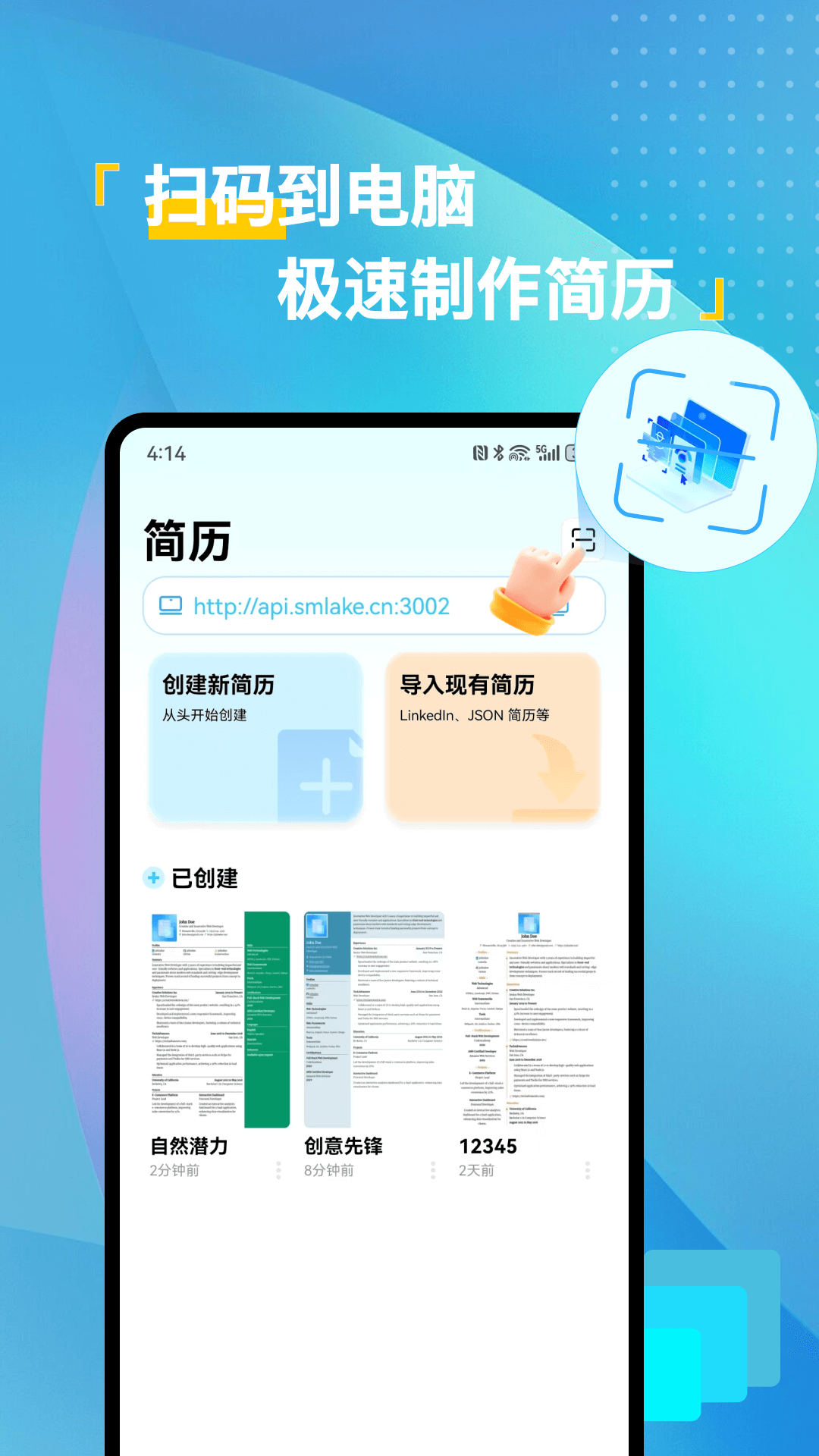 5、智能制作:一款专业、高效、智能的求职招聘找工作简历制作软件,操作简单。