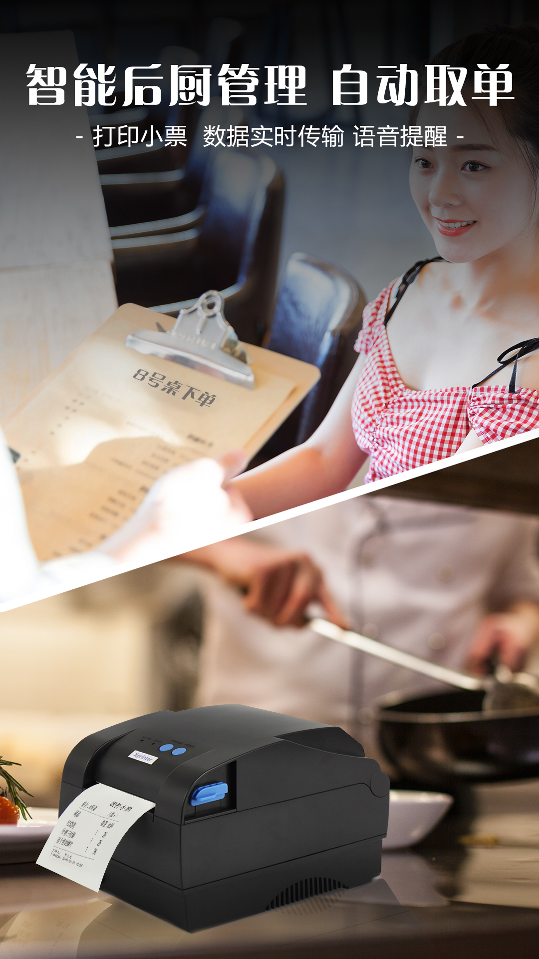 3、厨房管理:下单直达厨房,数据共享,自动出票。