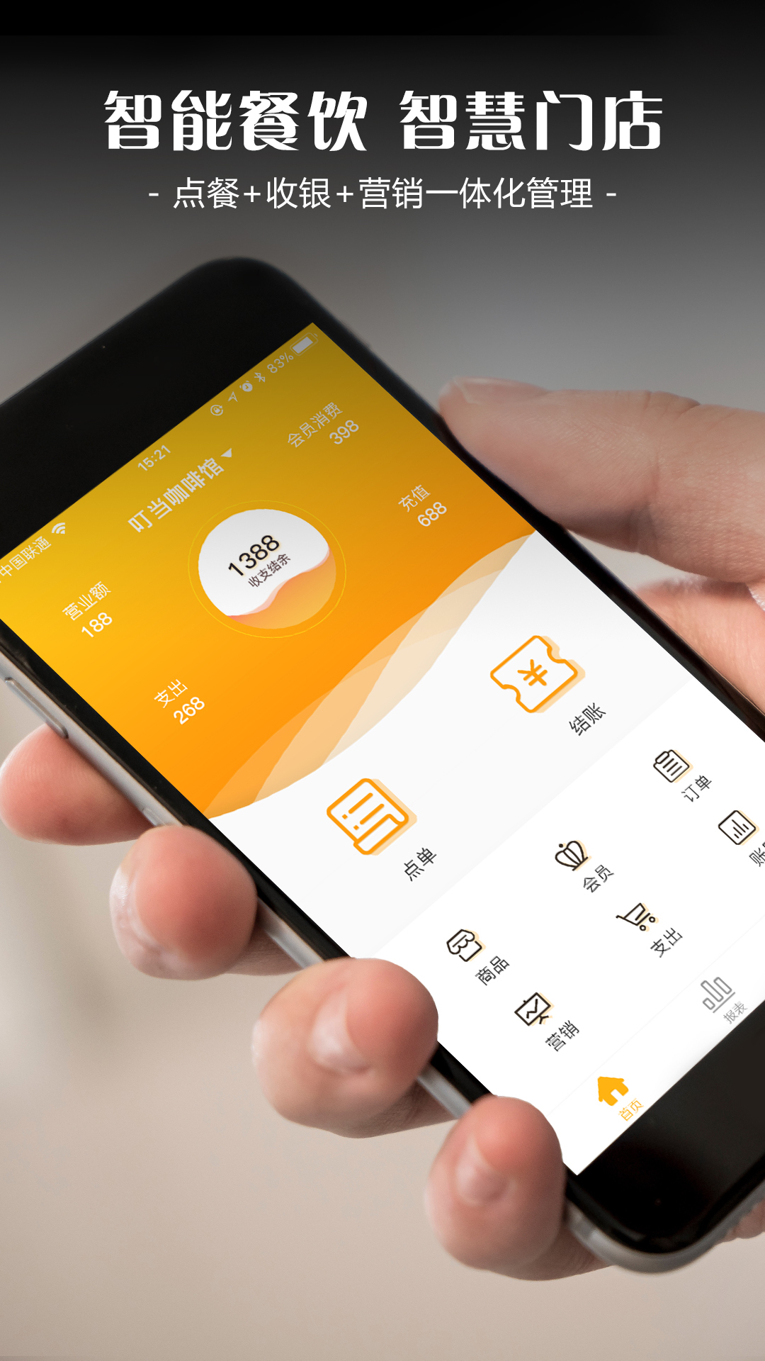 2、智能下单:吧台/桌台下单,手机点餐,高效灵活。