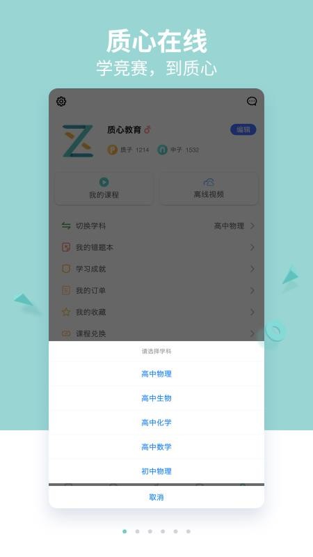 质心在线APP是一款专门为中学生学科竞赛创作的软件,已上线的物理、化学、生物、数学四个学科都是有专业的大神级别名师创作出精心制作的教学内容手把手教你知识。将竞赛分成模块化以知识点为单位开设课程,串联知识网络,免费题库反复练习,合理安排学习进度。
