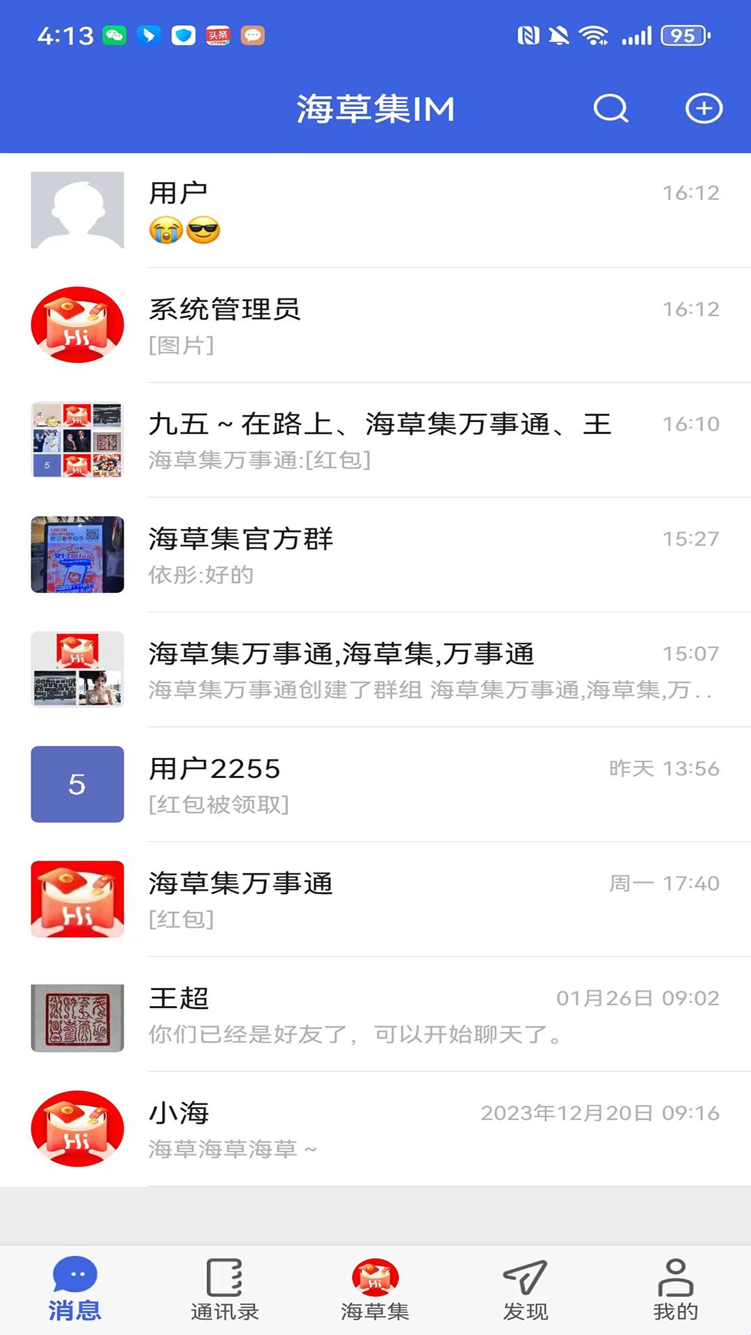3、发消息交流过程中,支持多种消息极速发送以满足社交需求的多类消息功能;