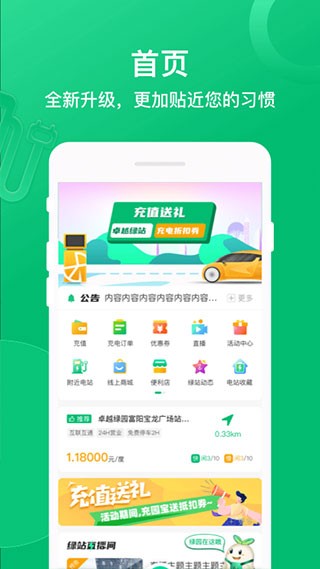 卓越绿园是一个共享充电app,为用户提供扫码充电。使用软件可以搜索到附近的充电地点,在充电地图上找充电站,快速充电宝。还定期推出一些折扣优惠劵的活动,充电越多送的福利越多。此外还为了您的安全设置了四重密码保障,全方位保护你的账号。