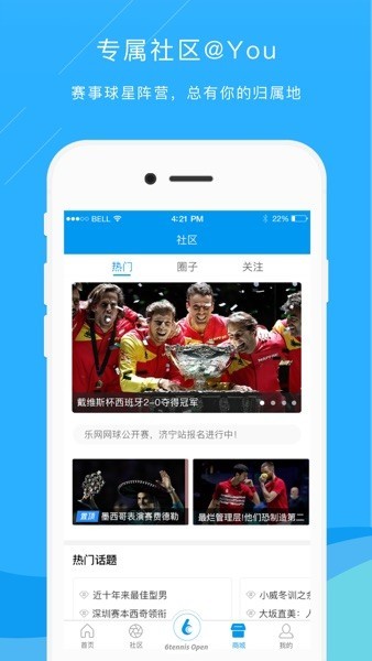 5、丰富的网坛资讯、社交圈子、个人中心等多项服;