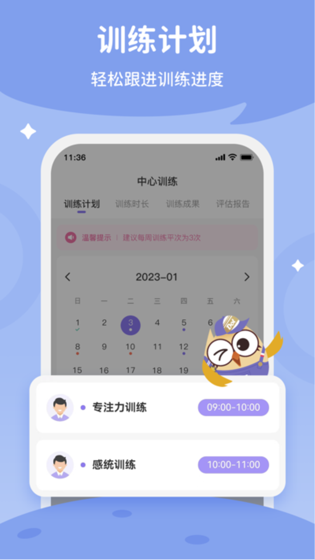 5、训练反馈报告:提供有效的反馈报告,直观展示孩子的训练情况和进步。
