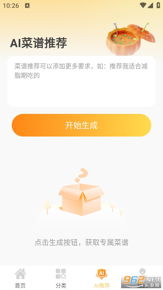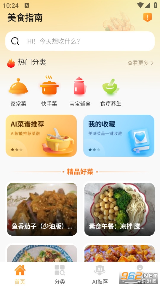 《厨房菜谱Menu》是一款能够使用AI查询并制作食谱的智能厨房食谱查询推荐软件,我在这款软件中能使用AI帮我推荐我适合做什么菜,我也可以选择在分类中查询到我想要做的事物,我想减肥,那么我也可以让AI根据我的体重以及目前拥有的食材进行食谱推荐,也能够在分类中找到减肥餐的菜谱。