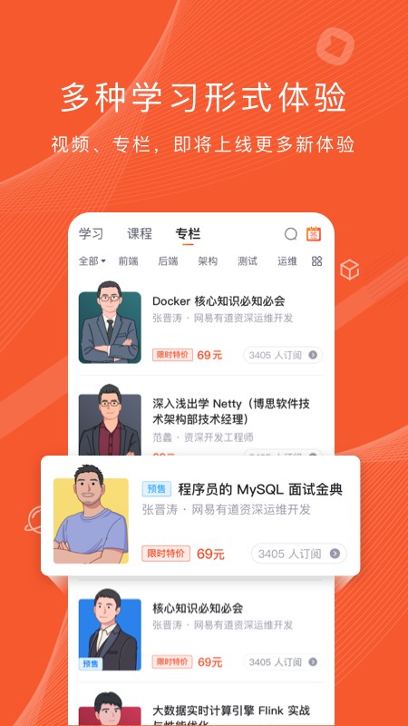 包含Python、Java、云计算/大数据、Web开发、游戏开发、软件研发、系统/网络……应有尽有,万门精品课程,覆盖全领域的技术知识。全方位名师指导,从入门到精通,手把手教你各类技术硬技能!
