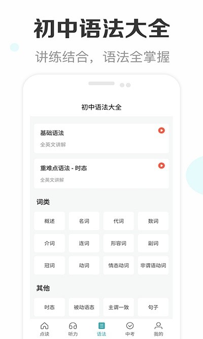 覆盖了初中常用的单词内容,所有的单词都可以在这里进行点读;