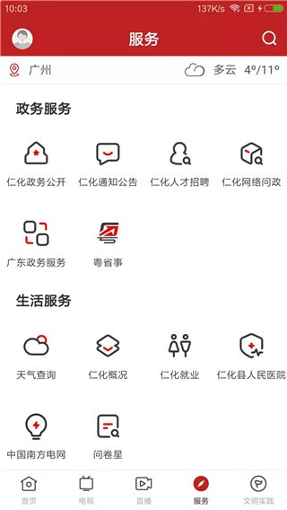 仁爱仁化是一款仁化县本地的生活资讯类便捷服务软件,汇集了本地热点新闻、手机电视、智慧民生、政策等为一体的功能应用。用户不仅仅可以查看当地的咨询,也可以看到其他地方乃至全国新闻。用户可以使用APP看直播电视里面种类丰富,线上办理生活服务,不用东奔西跑,欢迎喜欢的伙伴们下载体验!