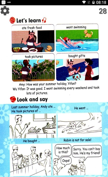 5、复习,是将课文的内容汇总,中英文直接对照朗读;