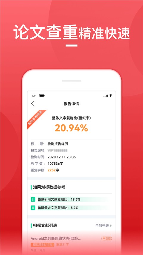 3、软件能够帮助用户精准的进行查询自己的论文查重的文章,帮助你避免了因为查重率太高过不了的问题发生。