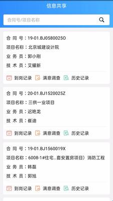 4、进入信息共享页面,选择查询项目历史记录,查看到岗记录详情;