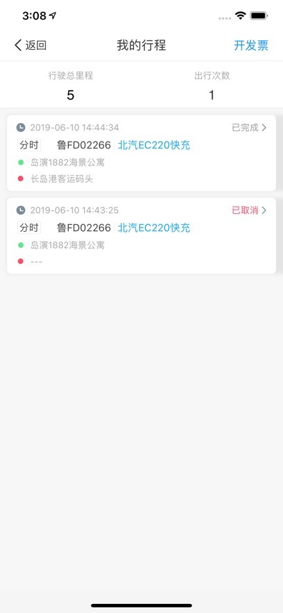 6、马上申请开发票,查看行程的时候点击开发票功能可以马上申请开发票;