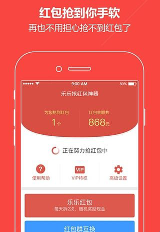 乐乐抢红包神器功能齐全,操作简单,想怎么抢红包都行,完全能达到满意的效果!只要在手机里安装乐乐抢红包神器,就能轻松秒抢、qq红包,安全免费不封号!你可以尽情的喝酒聊天看电视,生活红包两不误,抢红包就是这么任性!