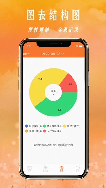 3、时间成就:促进时刻使用效率的进步,并利用以此获得的成就感,培养并保持自制力。