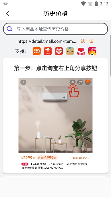 复制商品链接,查历史价曲线,价格走势一目了然,支持淘宝天猫、苏宁易购、京东、拼多多等多家电商查价。同时自动获取类似商品,同款比价、历史促销优惠