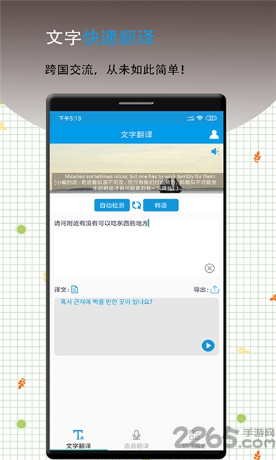 3.支持2265语音对话翻译,简单实用,中英日泰等源语言语音输入.