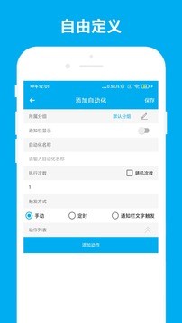 免ROOT自动化助手是一款手机自动化控制软件。该软件支持模拟手机上多种重复操作动作,支持语音控制,轻松唤醒app,触发方式丰富多样,支持定时触发,使用起来非常的人性化,适用机型也非常的丰富,辅助功能可以帮助家里老人更便捷的使用手机,非常实用,有需要的小伙伴们快来下载体验吧!
