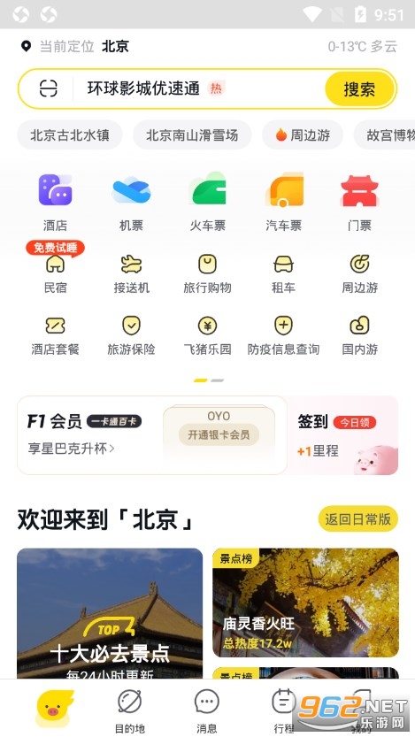 《飞猪旅行app》是阿里巴巴集团旗下的旅行app,方便旅行游客优惠预订机票酒店火车票,可以提前规划好自己的形成,根据自己旅行游玩的目的地提前几天定好酒店,在平台上购买好相关景点的门票,并买好返程的火车票或者是机票,最新版本中还加入了防疫工具,能直接在上面打开健康码、行程码等等。
