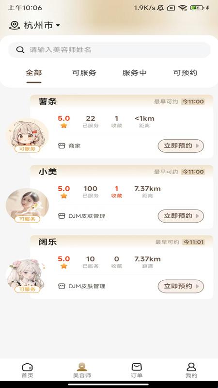 4、在线预约,找到专业的美容师可以一键在线预约,方便准时得到美容服务;