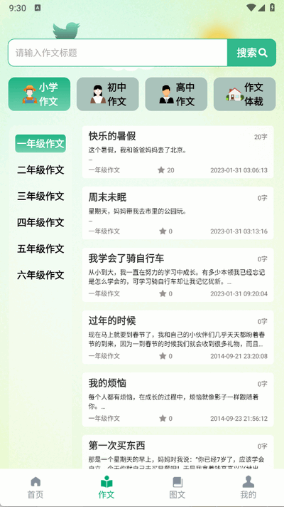范文库:按年级/题材分类。